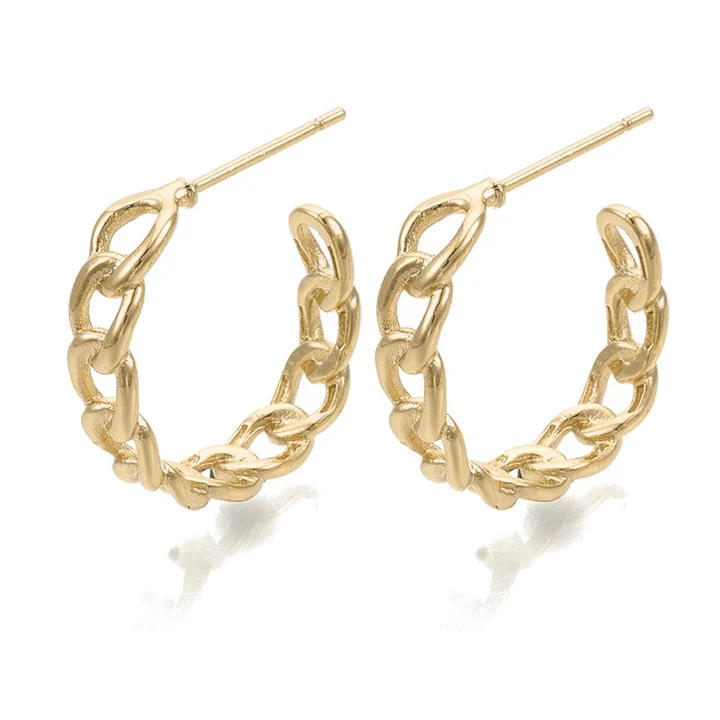 Des demi-créoles élégantes au design chaîne, modernes et raffinées. En plaqué or, elles illuminent toutes vos tenues avec style.