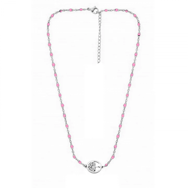 Collier Arbre de Vie & Perles Roses – Acier InoxydableCollier Arbre de Vie et Perles Roses – Acier Inoxydable