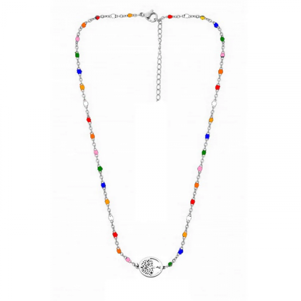 Collier Arbre de Vie – Perles Multicolores & Acier InoxydableCollier Arbre de Vie – Perles Multicolores & Acier Inoxydable
